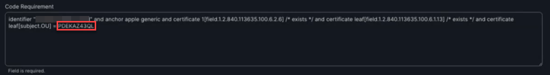 Copy the result of the designated output to the **Code Requirement** field in Jamf.
