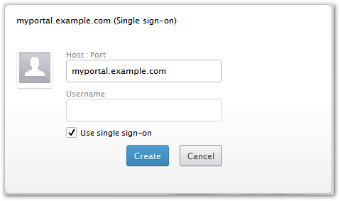 5. （オプション）システムがSAMLをサポートしている場合、**single sign-onを使用する**チェックボックスをオンにすると、Finderは外部の認証メカニズムによりユーザー名およびパスワードを管理させます。