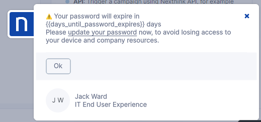 4. キャンペーンでユーザーに通知してから48時間後、パスワードが変更されていない場合は、マネージャーの代わりに従業員にパスワード変更を促します。