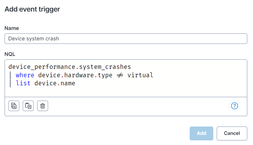 このワークフローはシステムクラッシュ時にイベントトリガーを使用して自動的に実行されるように設計されています。 以下のクエリを使用してワークフローイベントをトリガーできます。