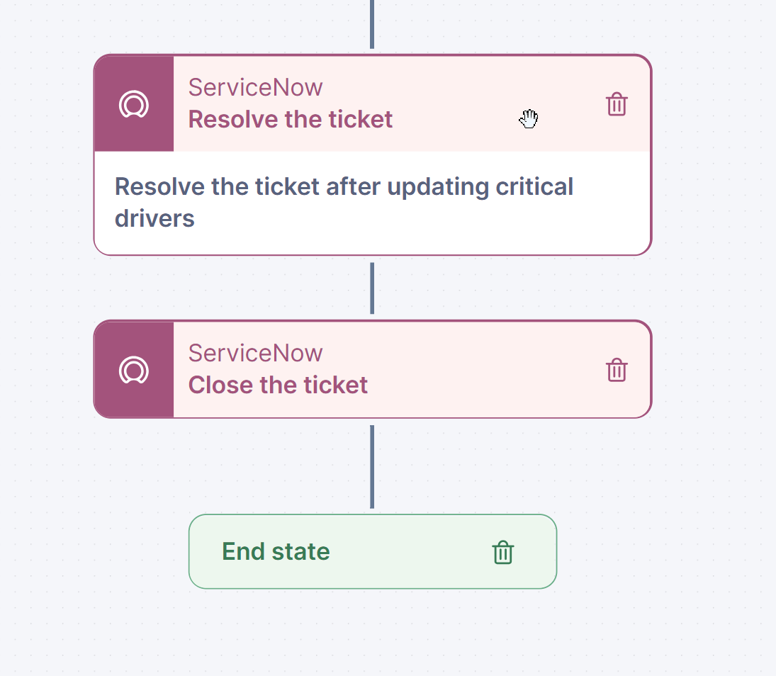 * 実行されたすべてのアクションに関する情報は最終チケットに追加され、自動的に解決されて閉鎖されます。