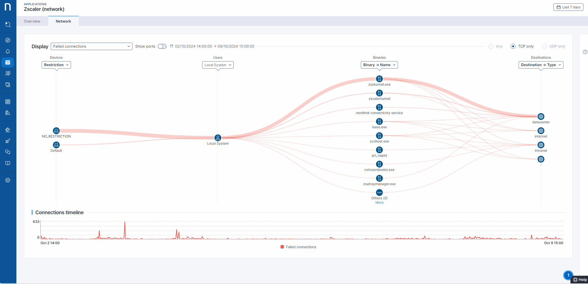 ウェブおよびデスクトップクライアントの全体的な健全性と信頼性に関する追加の可視性は**ZscalerとZscalerネットワーク**アプリケーションを使用して[Applications](https://docs.nexthink.com/platform/ja/user-guide/applications)モジュールからアクセスできます。