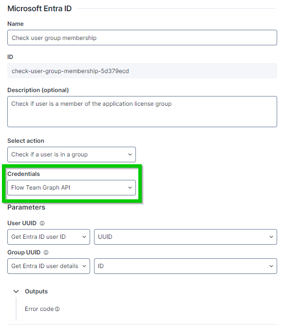 フルセットアップ手順については、[ワークフローのための Entra ID 統合](https://docs.nexthink.com/platform/ja/library-packs/faq/entra-id-integration-for-workflows) を参照してください。