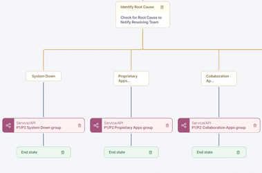 * MIMチームメンバーがキャンペーン内でオプションを選択すると、ワークフローは彼らの応答に基づいて条件付きチェックをトリガーします。 It then calls the ServiceNow (SNOW) API to move the initial P1/P2 ticket to the Resolving Team's queue.