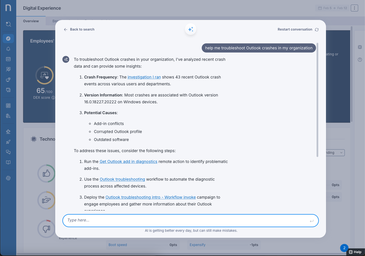 従業員が独自に問題を解決できるよう、リモートアクションとキャンペーンを組み合わせましょう。 キャンペーンを使用して、従業員に問題の検出を通知し、その解決に向けて誘導します。