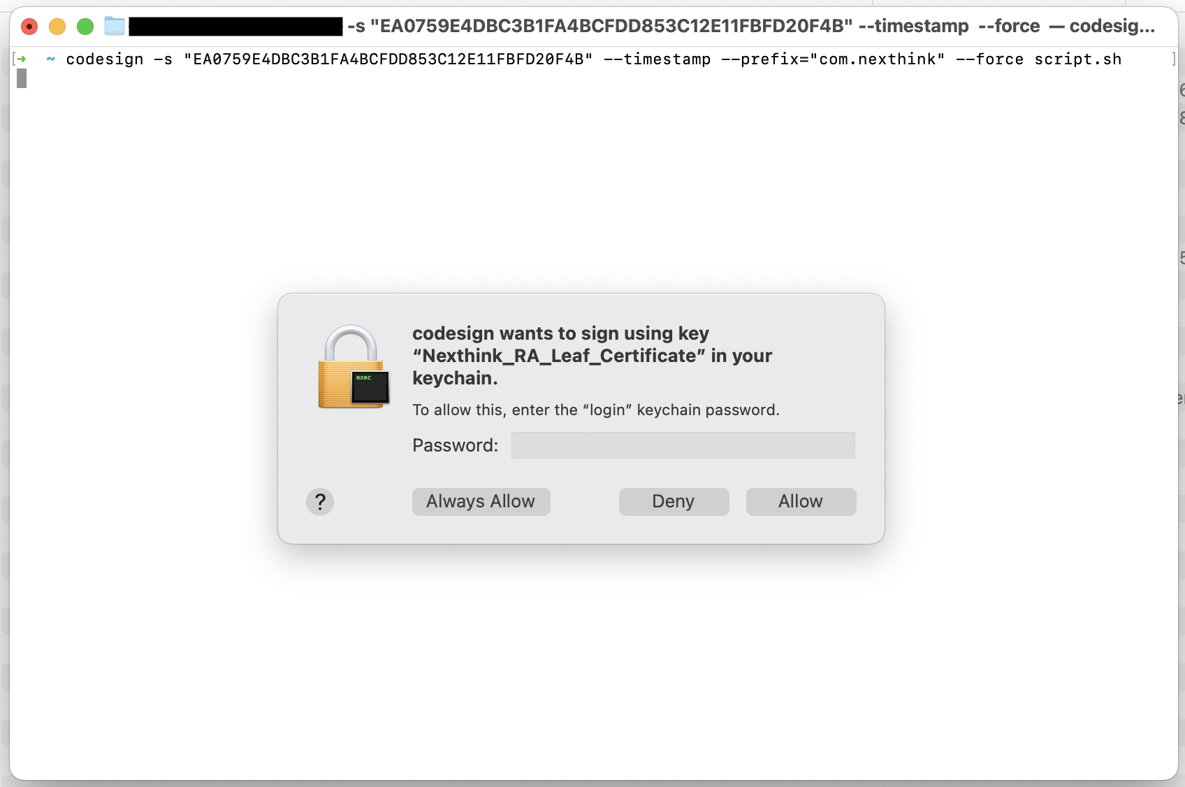 Nexthinkは、このスクリプトを使用して署名およびパッケージ化プロセスを簡素化することをお勧めします。