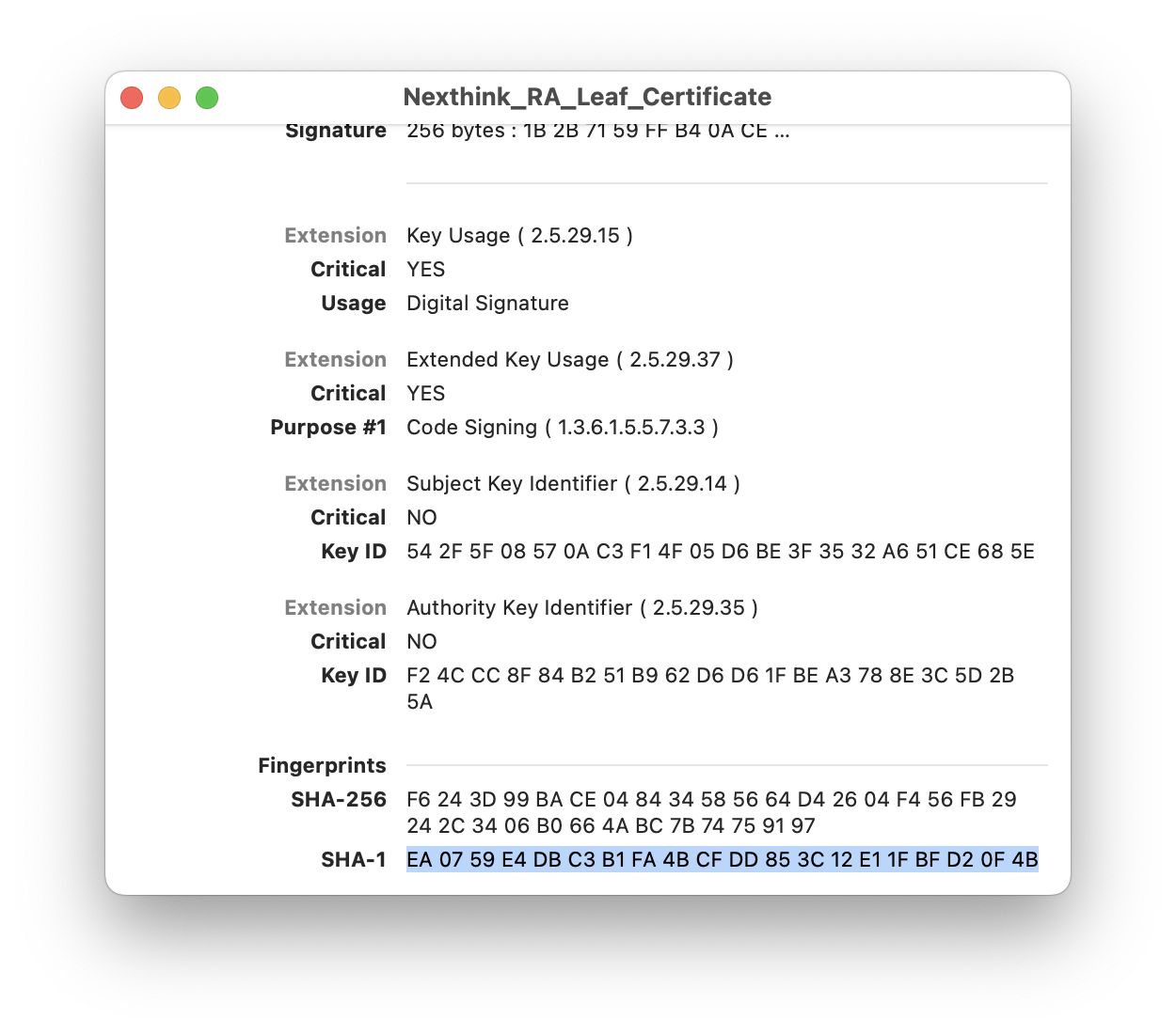 証明書ピニングでは、あらゆる種類のコード署名証明書がサポートされています: