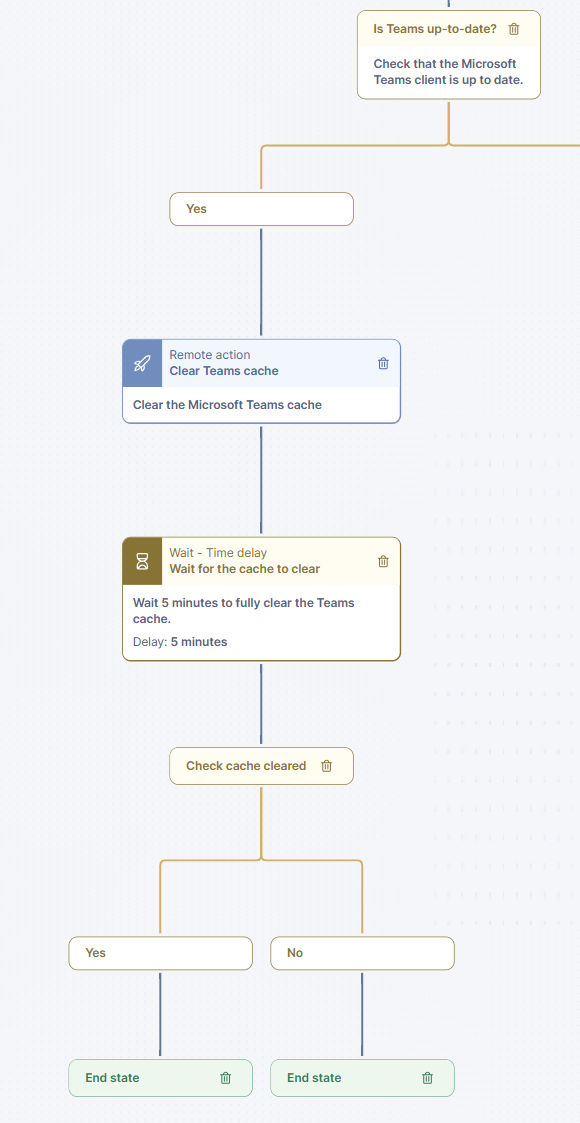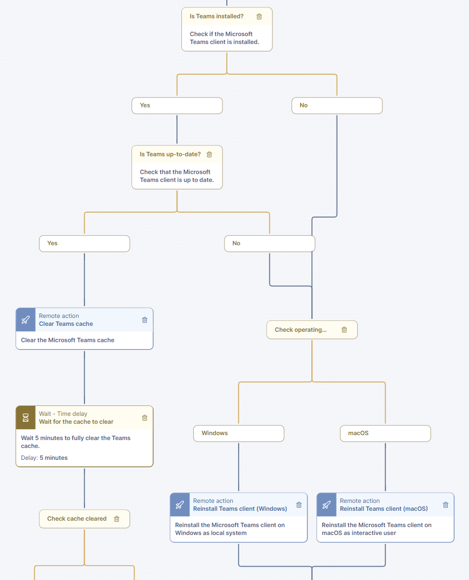 The workflow checks for the installation and version status of the MS Teams client