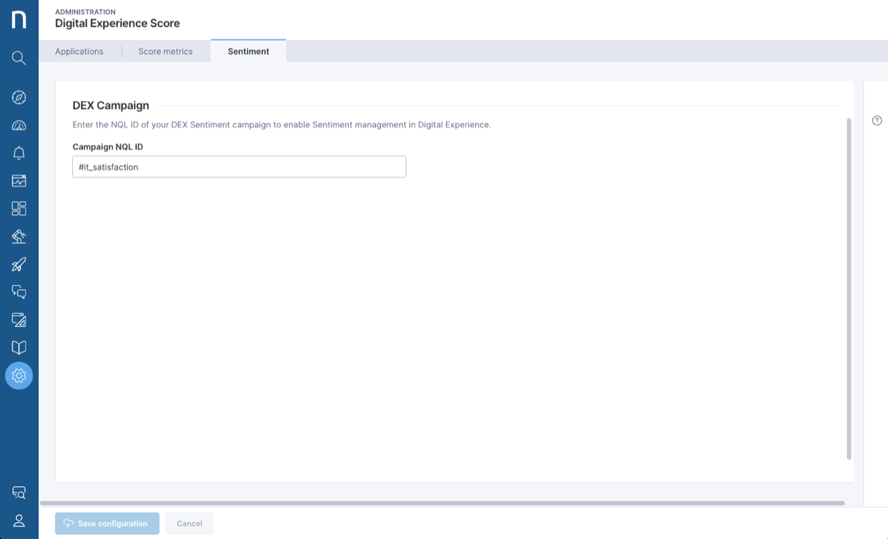 ## Accessing the Digital Experience Score configuration page <a href="#digitalexperiencescoremanagement-accessingthedigitalexperiencescoreconfigurationpage" id="digitalexperiencescoremanagement-accessingthedigitalexperiencescoreconfigurationpage"></a>