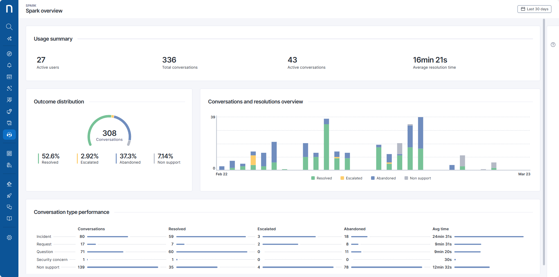 * **Resolved**: Conversations successfully solved by Spark.